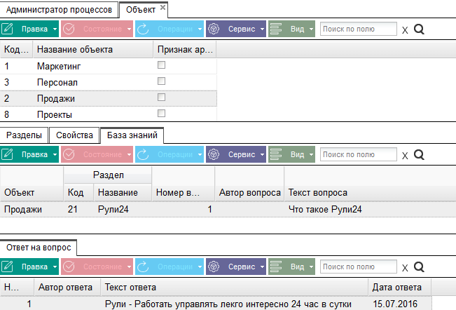 По каждому объекту можно накапливать базу знаний в виде часто задаваемых вопросов и ответов на них.
